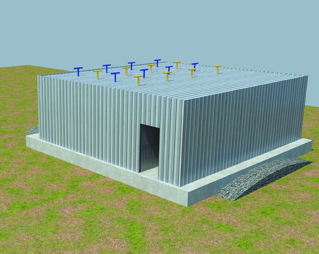 Larger hanger version designed for short term stay for up to 1000 soldiers with equipment. Includes barracks and sanitation facilitiesFortified structure with a wide opening for fast and easy construction designed to protect troops, civilians, vehicles and equipment. The structure is constructed using fortified, elements filled with an inert material (dirt / sand / concrete).