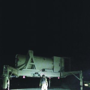 A fortified observation post and combat platform brought into the field that erects within minutes: mobile tower, fortified elevated sangar, autonomous.