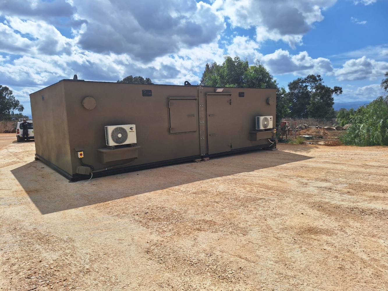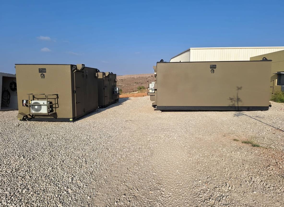 A series of simple yet effective steel, portable and fortified structures. Low weight combined with portability and mobility allow these units be deployed to any location – easily and quickly with no need for any infrastructure to provide protection for soldiers and civilians. No need for any infrastructure.