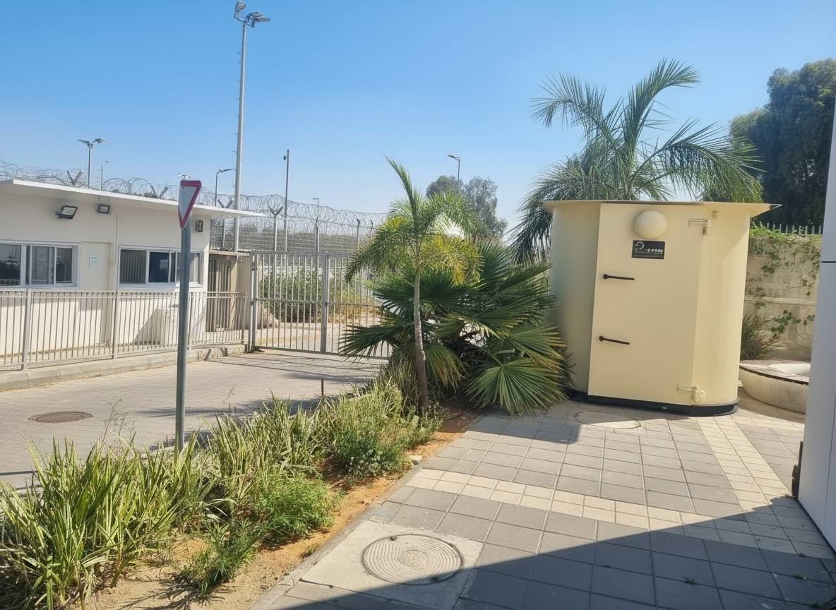 Round shelter near an hospital gate