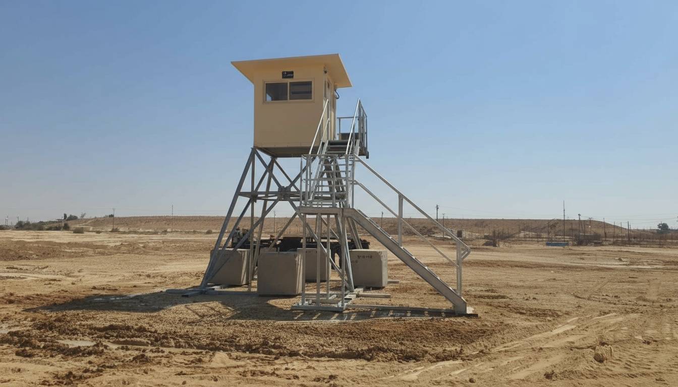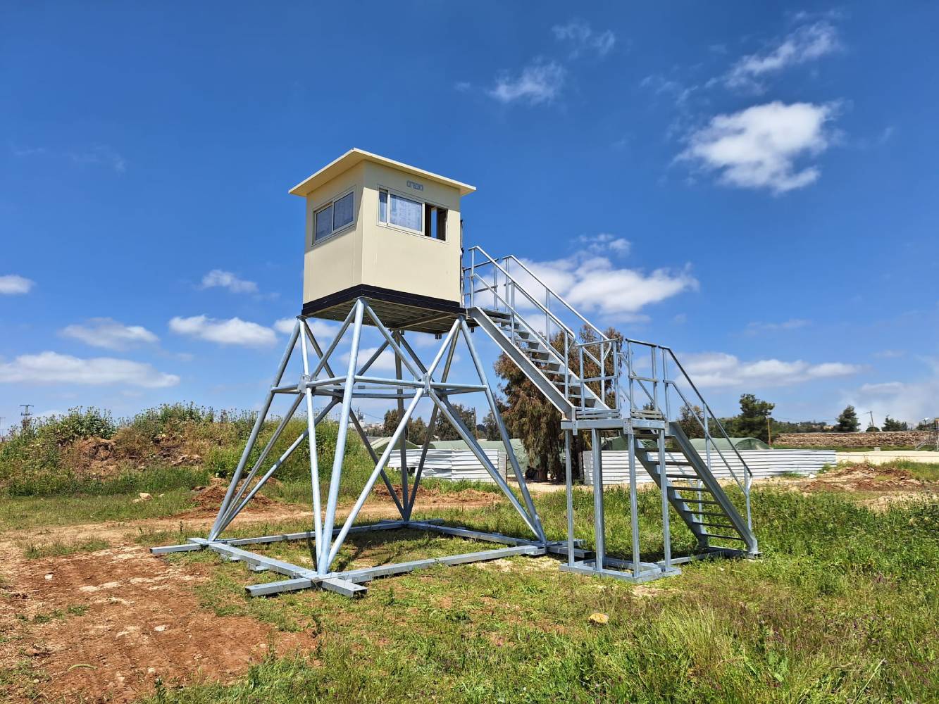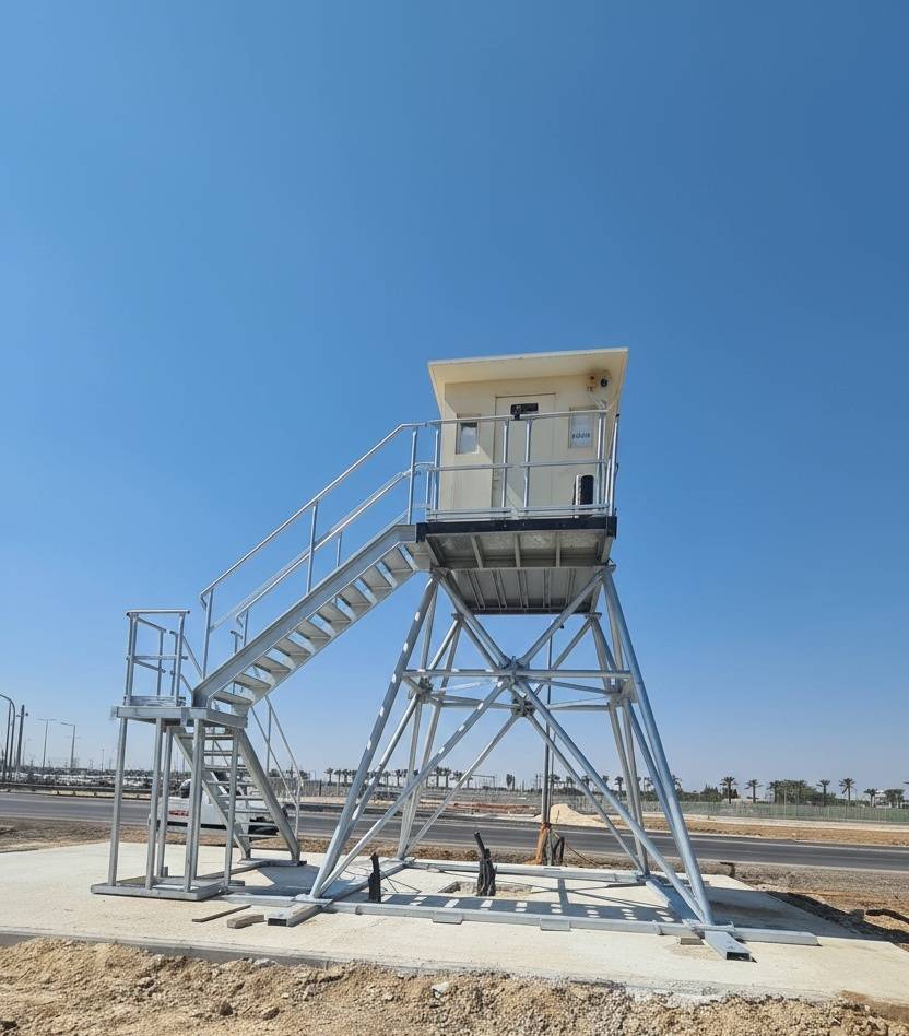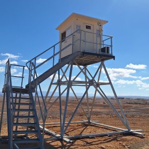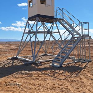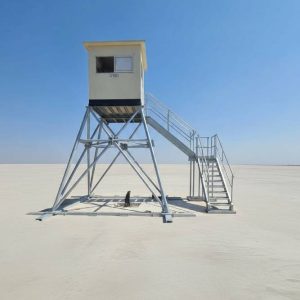 Series of non-fortified observation towers built from detachable, galvanized elements and a steel base.